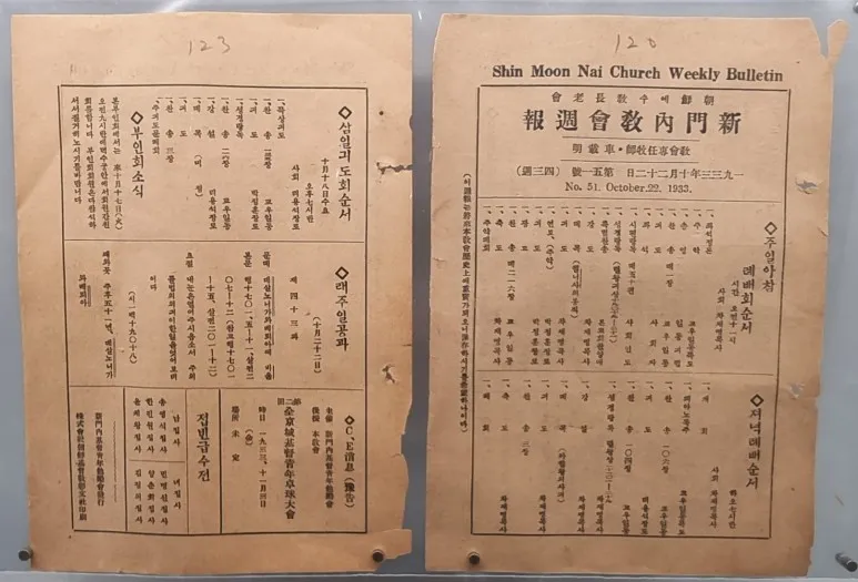 새문안교회 주보 자료에 따르면 1933년 새문안교회는 오전 11시 예배를 드리고 있습니다.