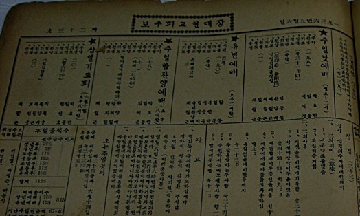 저녁예배를 보면 새문안교회는 그냥 저녁예배, 장대현교회는 주일밤찬양예배라고 적혀있는 것을 볼 수 있습니다. 새문안교회는 저녁예배 전 30분간 면려회라는 것이 있어 전도사업을 중심으로 한 활동을 했다고 되어 있으며 장대현교회 쪽은 30분 전에 찬송가를 가르쳤다는 기록이 남아 있습니다. 새문안교회의 면려회 역시 언더우드 선교사가 시무하던 시절 최초의 악보찬송가집<찬양가>를 편찬하고 보급한 것이 새문안교회였으므로 이 시간 찬송을 가르쳤을 가능성이 높습니다. 그리고 이 전통이 저녁예배=찬양예배로 생각하게 하거나 혹은 그냥 예배라도 낮시간 예배보다 노래를 많이 하는 예배형식으로 변화한 근원이라고 할 수 있습니다.